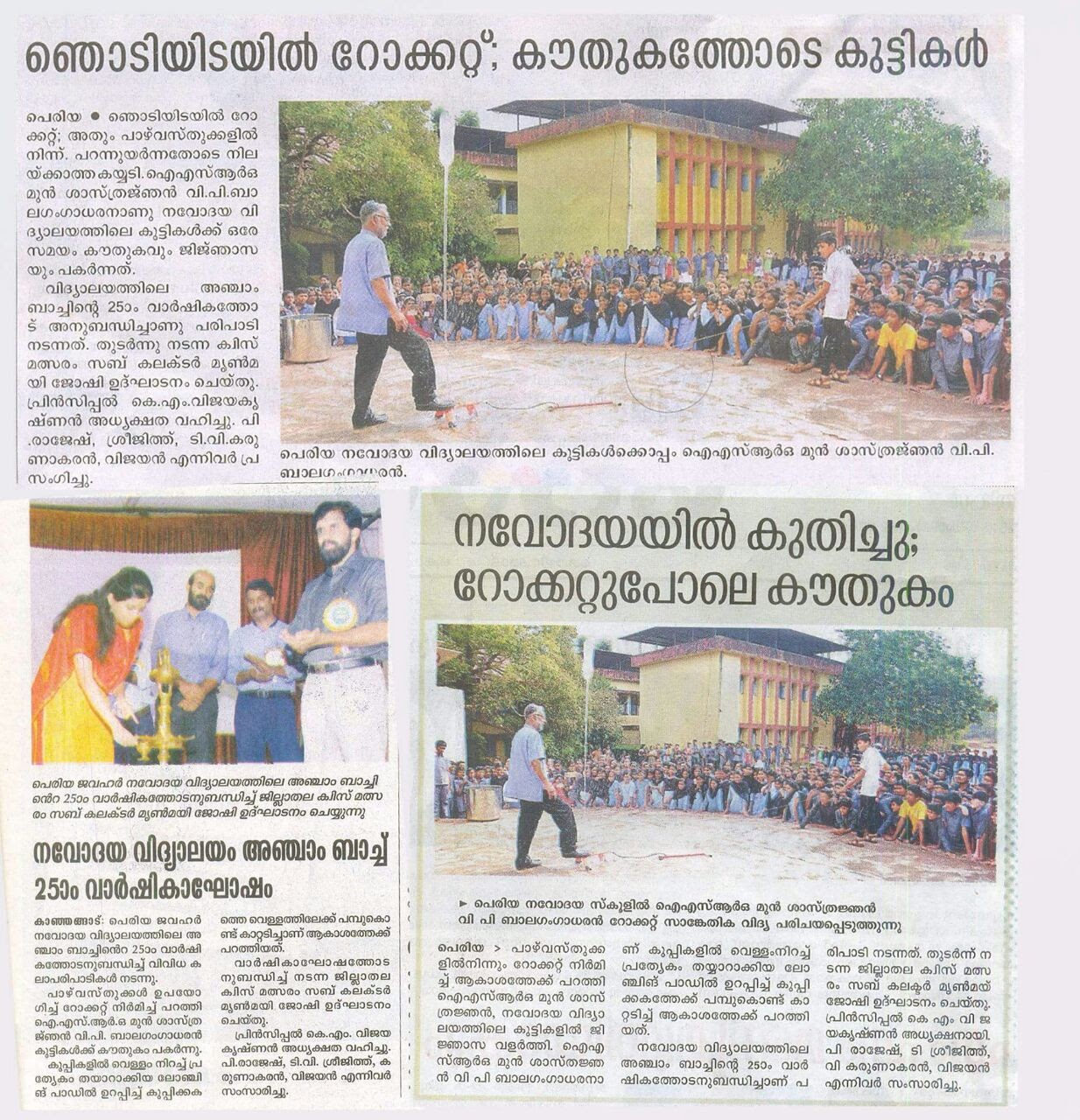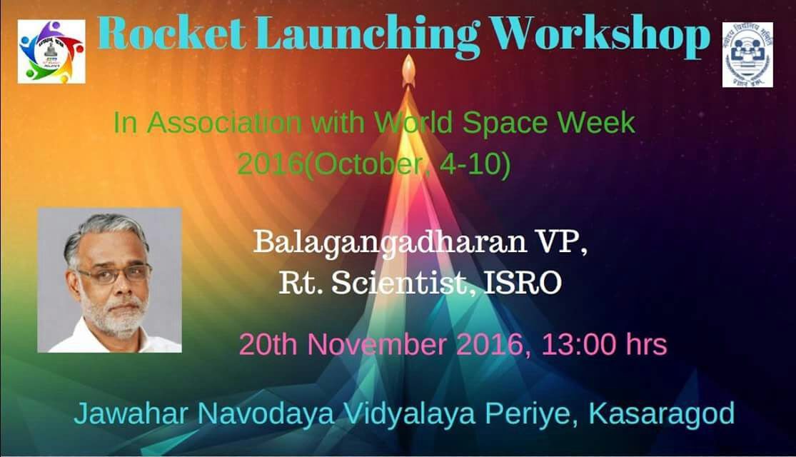 Dr.V.P Balagangadharan (Rtd. ISRO Scientist) has conducted a Rocket launching Demonstration and workshop on 20th of November 2016 with huge participation of students of various schools. The demo was conducted with useless 2Litre Coco-cola bottles , card boards , papers etc.