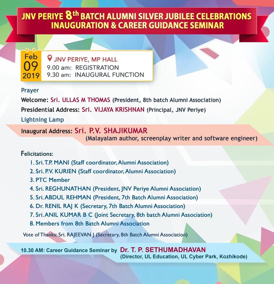 One Year long Silver Jubilee Celebration of 8th batch of JNV Kasaragod (1993-2000)
